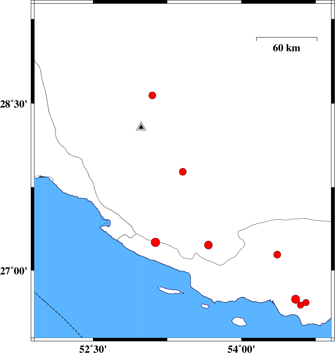 | 2025/05/04 | 07:05:45.6 | 10:35:45.6 | 27.888 | 53.407 | 12 | ML:3.2 | Fars Province, 70 km South-West of Jahrom | ||