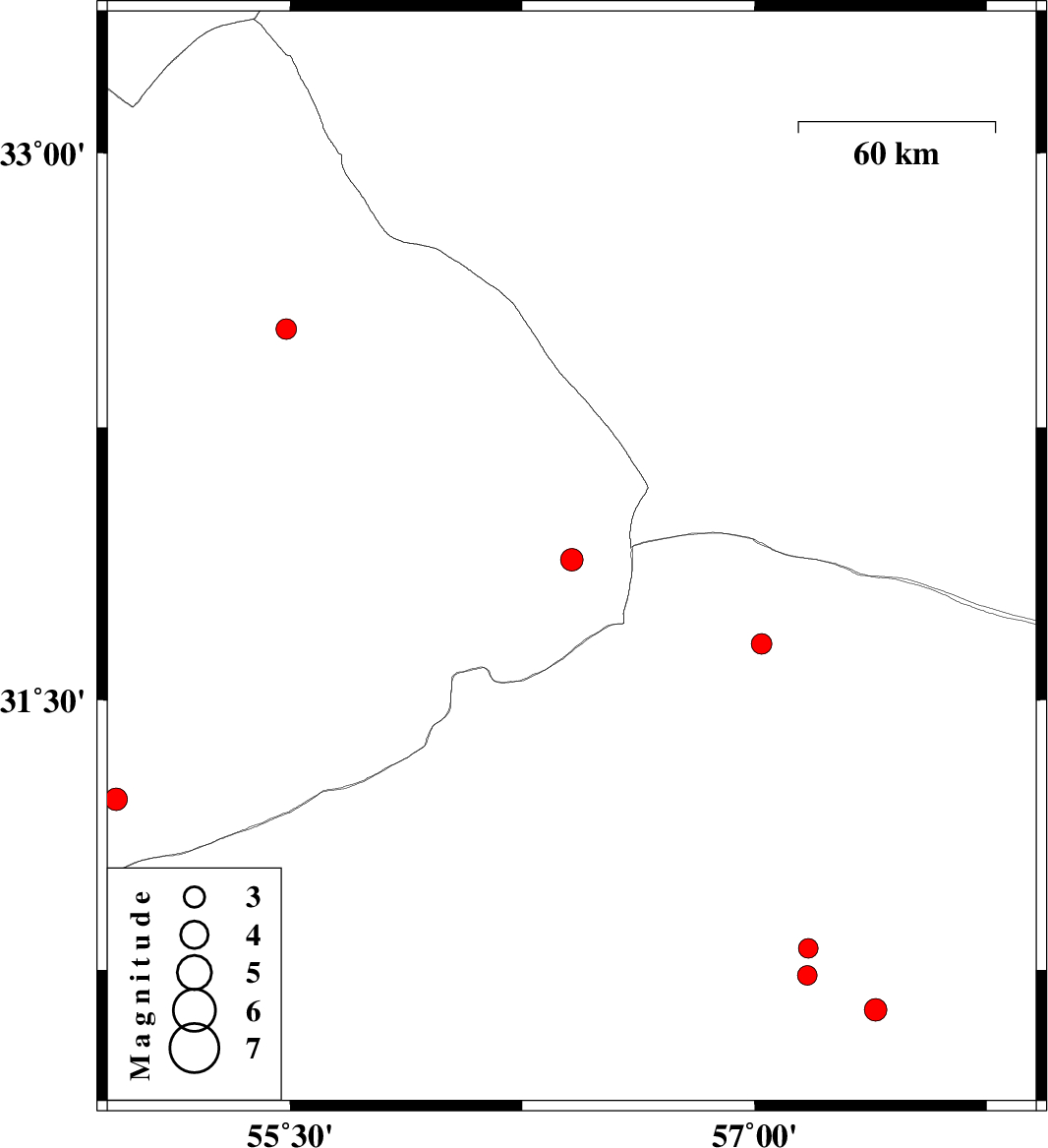 | 2025/04/17 | 20:00:41.4 | 23:30:41.4 | 30.639 | 57.392 | 16 | ML:3.3 | Kerman Province, 49 km North-East of Kerman |