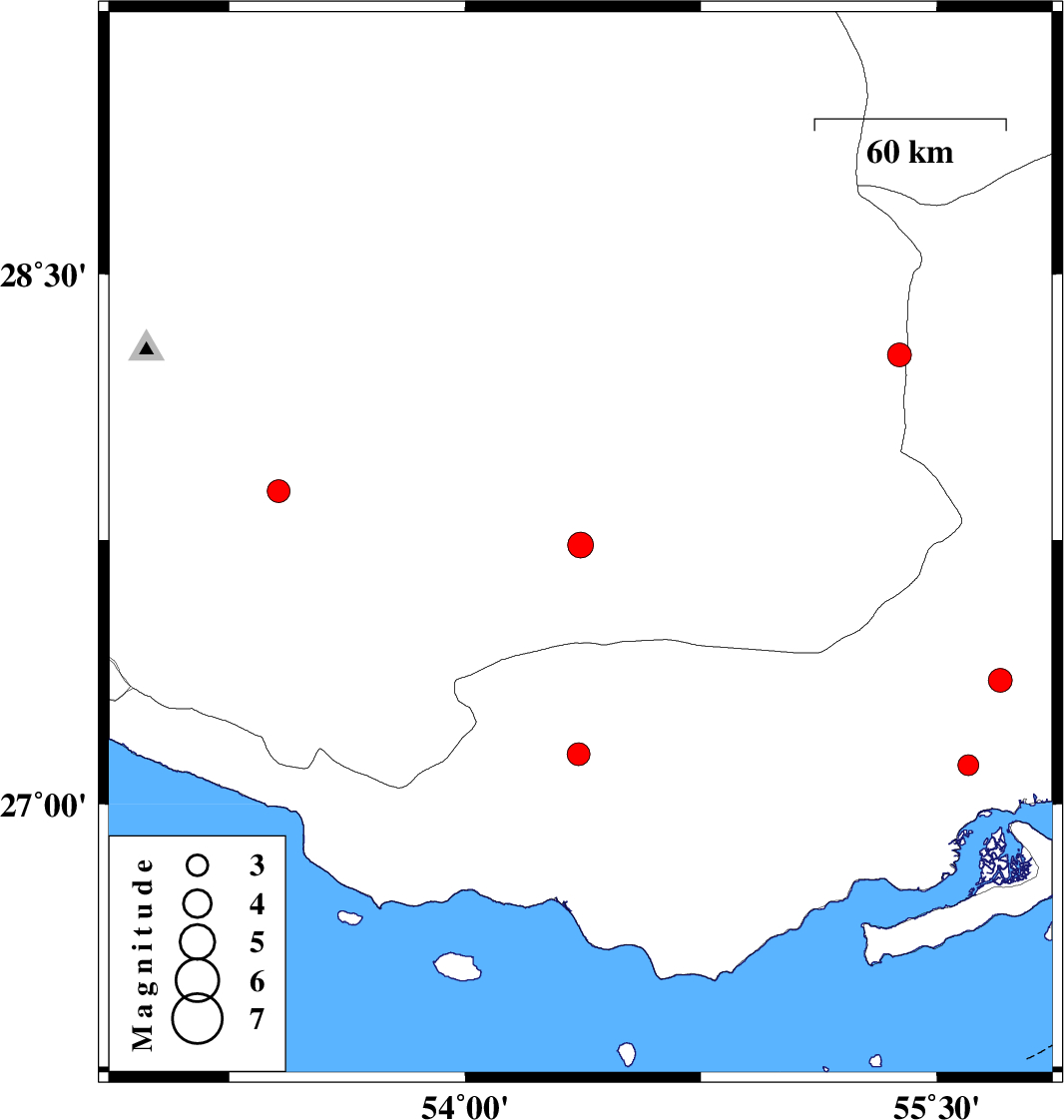 | 2025/05/15 | 05:10:04.3 | 08:40:04.3 | 27.352 | 55.702 | 12 | ML:3.4 | Hormozgan Province, 60 km North-West of Bandar-e abbas | ||