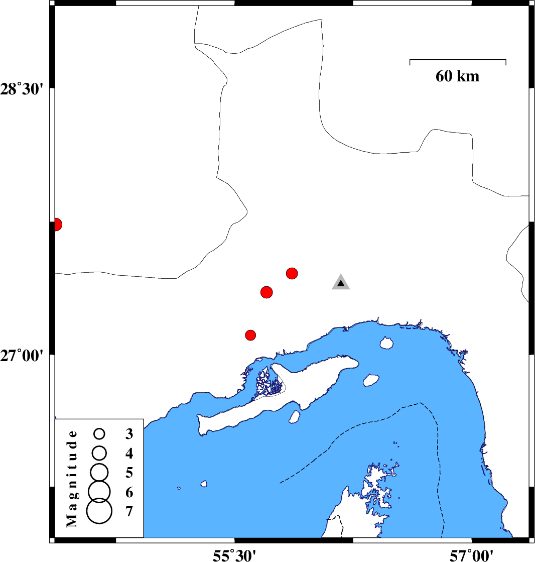 | 2025/05/15 | 05:10:04.3 | 08:40:04.3 | 27.352 | 55.702 | 12 | ML:3.4 | Hormozgan Province, 60 km North-West of Bandar-e abbas | ||