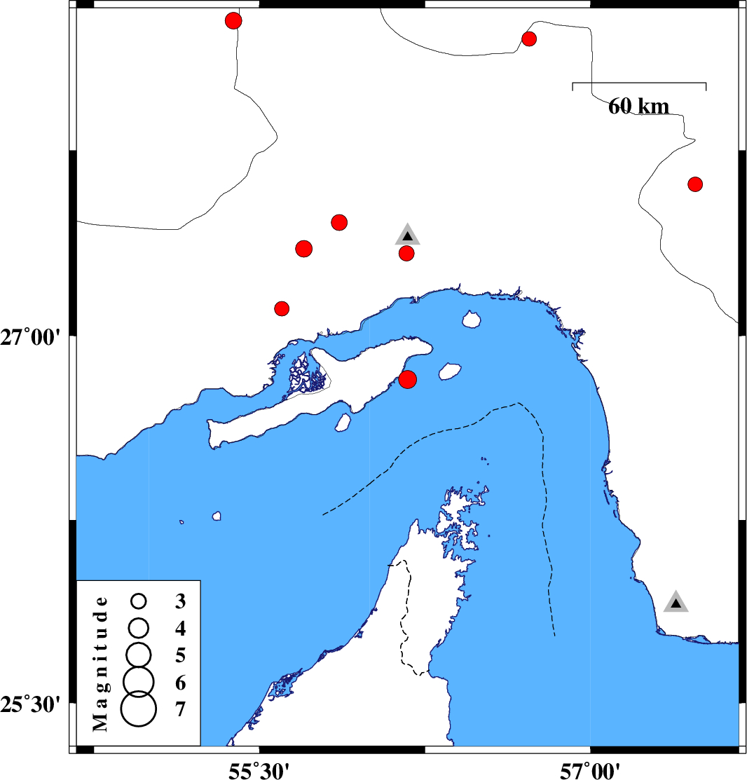 | 2025/05/15 | 05:10:04.3 | 08:40:04.3 | 27.352 | 55.702 | 12 | ML:3.4 | Hormozgan Province, 60 km North-West of Bandar-e abbas | ||