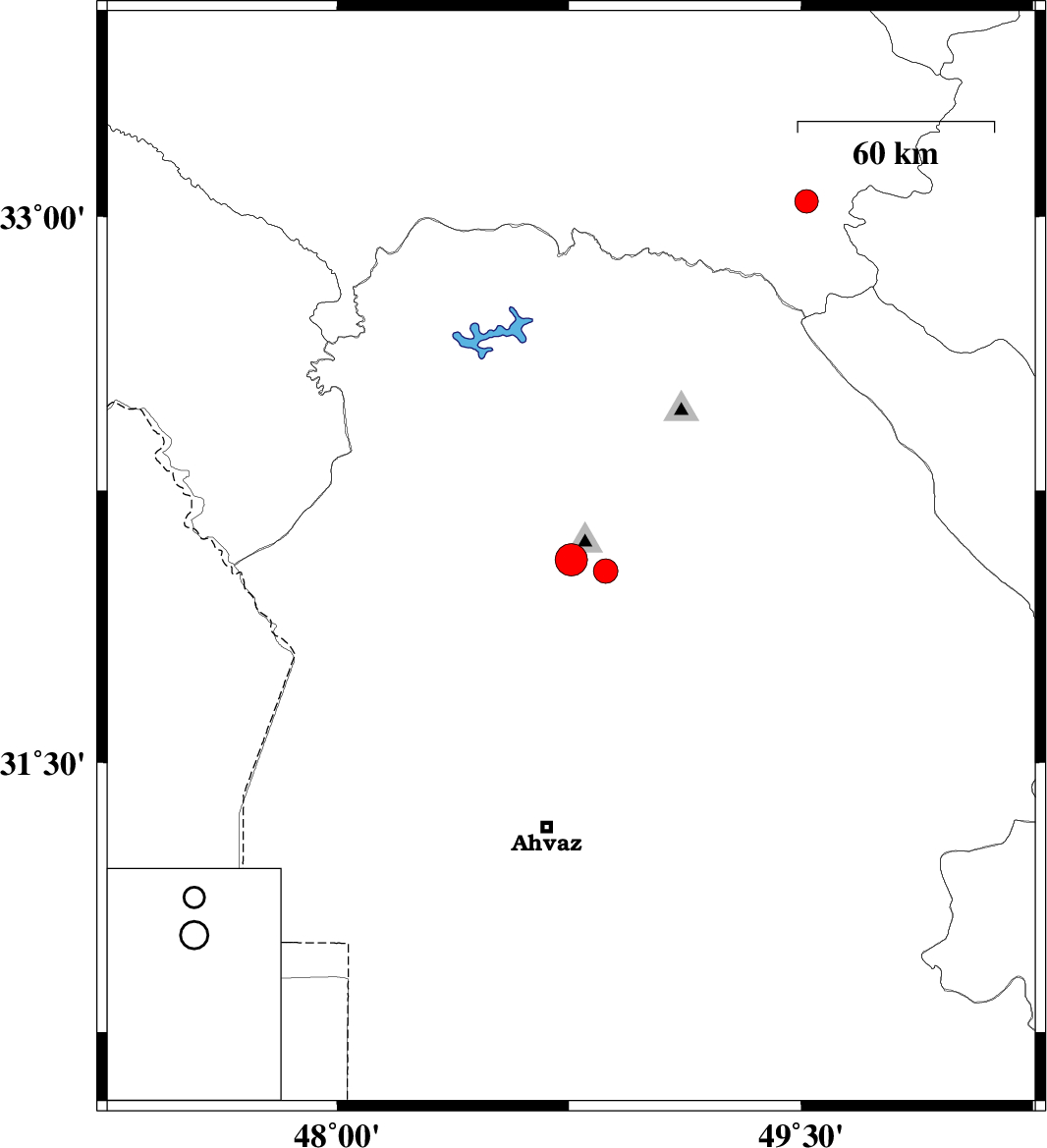| 2025/05/24 | 09:10:57.1 | 12:40:57.1 | 32.059 | 48.757 | 12 | ML:4.6 | Khoozestan Province, 9 km of Shushtar | ||