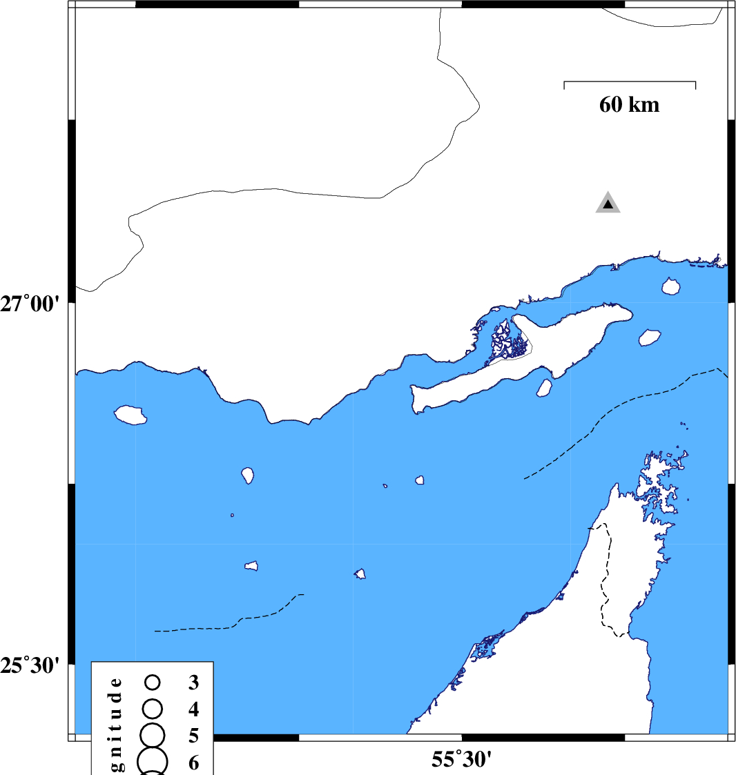 | 2025/06/01 | 11:56:45.0 | 15:26:45.0 | 26.708 | 55.222 | 12 | ML:3.3 | Persian Gulf, 42 km North-East of Bandar-e lengeh |