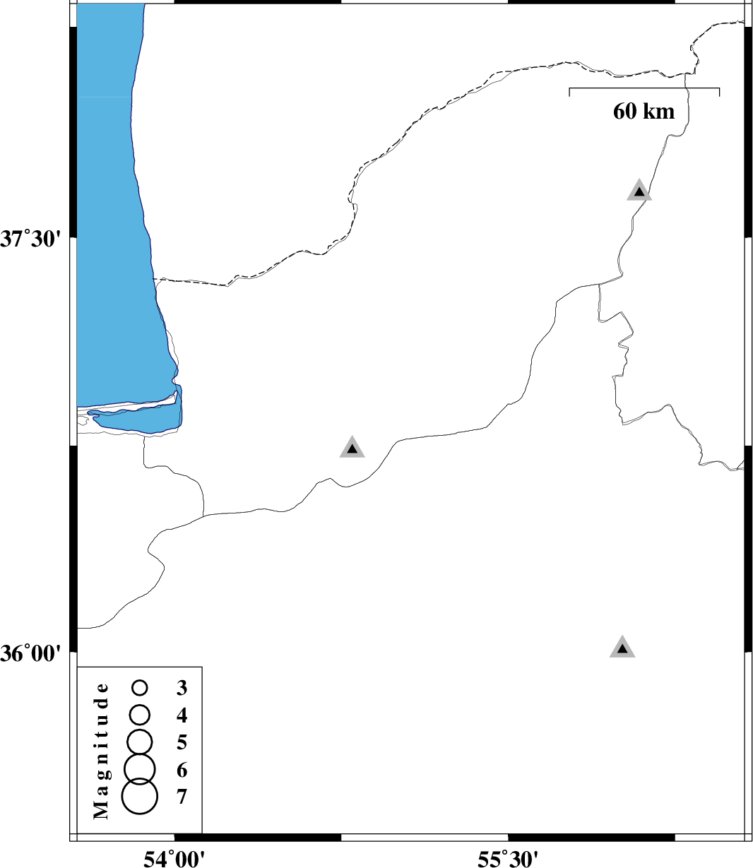 | 2025/06/04 | 13:38:17.8 | 17:08:17.8 | 36.833 | 55.062 | 10 | ML:3.5 | Golestan Province, 21 km South of Ramian |