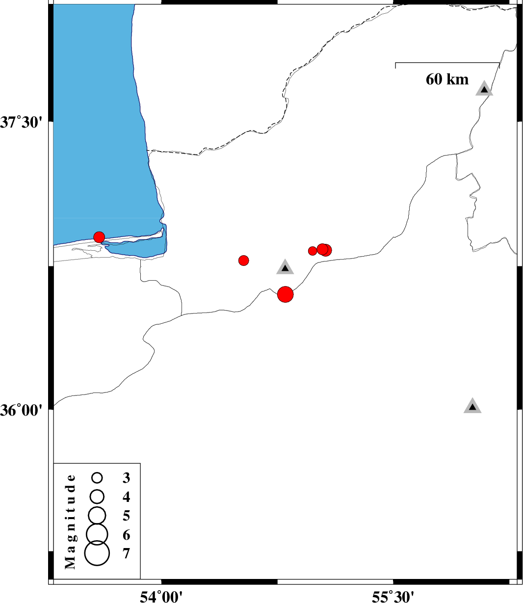 | 2025/06/20 | 11:58:41.1 | 15:28:41.1 | 36.9 | 53.596 | 12 | ML:3.2 | Caspian Sea, 23 km North of Behshahr | ||