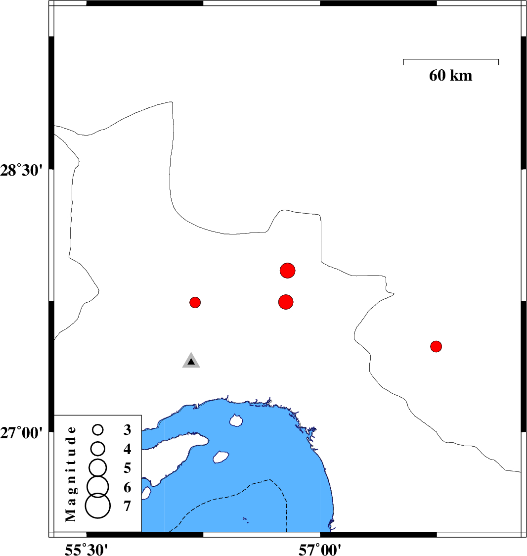 | 2025/06/17 | 22:59:48.0 | 02:29:48.0 | 27.741 | 56.197 | 12 | ML:3.1 | Hormozgan Province, 63 km North of Bandar-e abbas | ||
