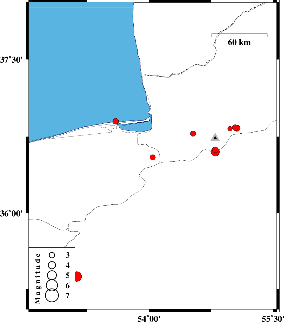 | 2025/06/04 | 13:38:17.8 | 17:08:17.8 | 36.833 | 55.062 | 10 | ML:3.5 | Golestan Province, 21 km South of Ramian |