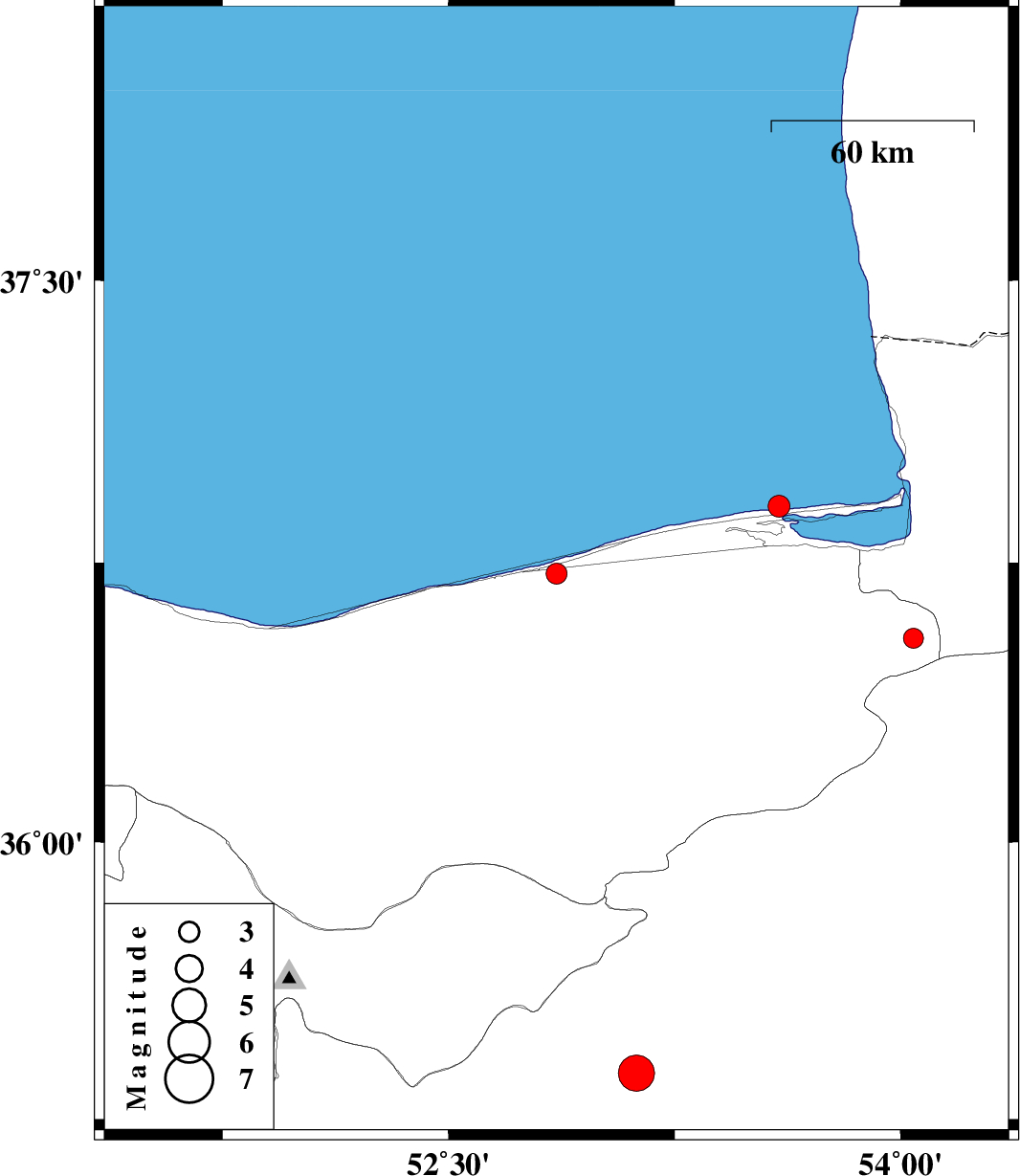 | 2025/06/20 | 11:58:41.1 | 15:28:41.1 | 36.9 | 53.596 | 12 | ML:3.2 | Caspian Sea, 23 km North of Behshahr |