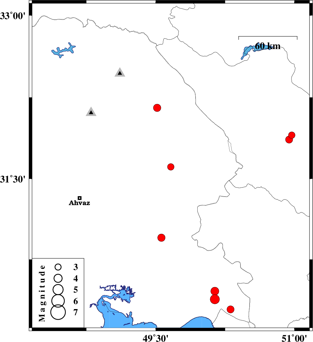 | 2025/06/06 | 17:01:36.5 | 20:31:36.5 | 32.154 | 49.515 | 12 | ML:3.7 | Khoozestan Province, 32 km North-East of Masjed Soleyman | ||