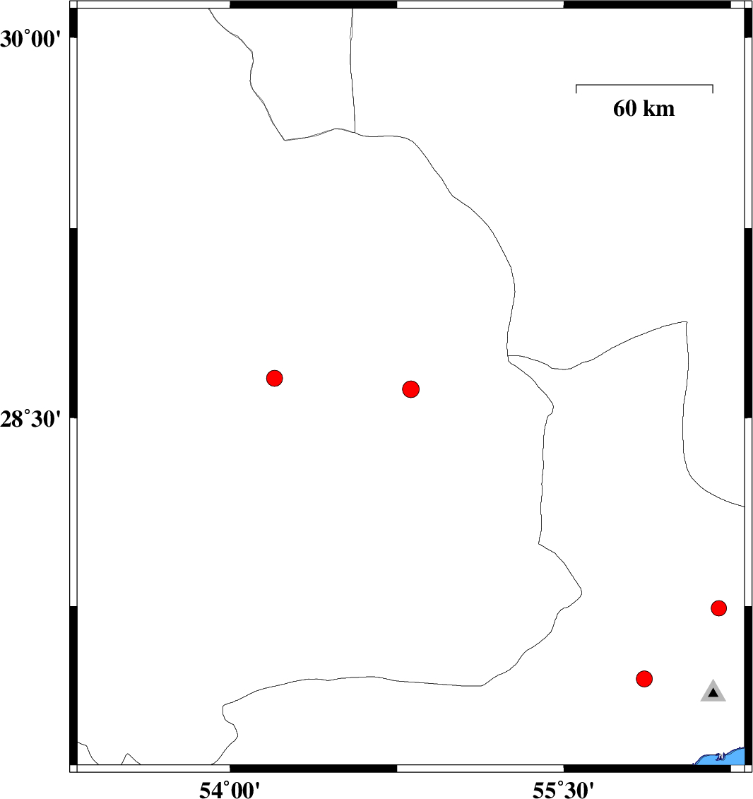 2025/06/17 | 12:18:24.7 | 15:48:24.7 | 28.614 | 54.812 | 12 | ML:3.4 | Fars Province, 31 km South-East of Darab | ||