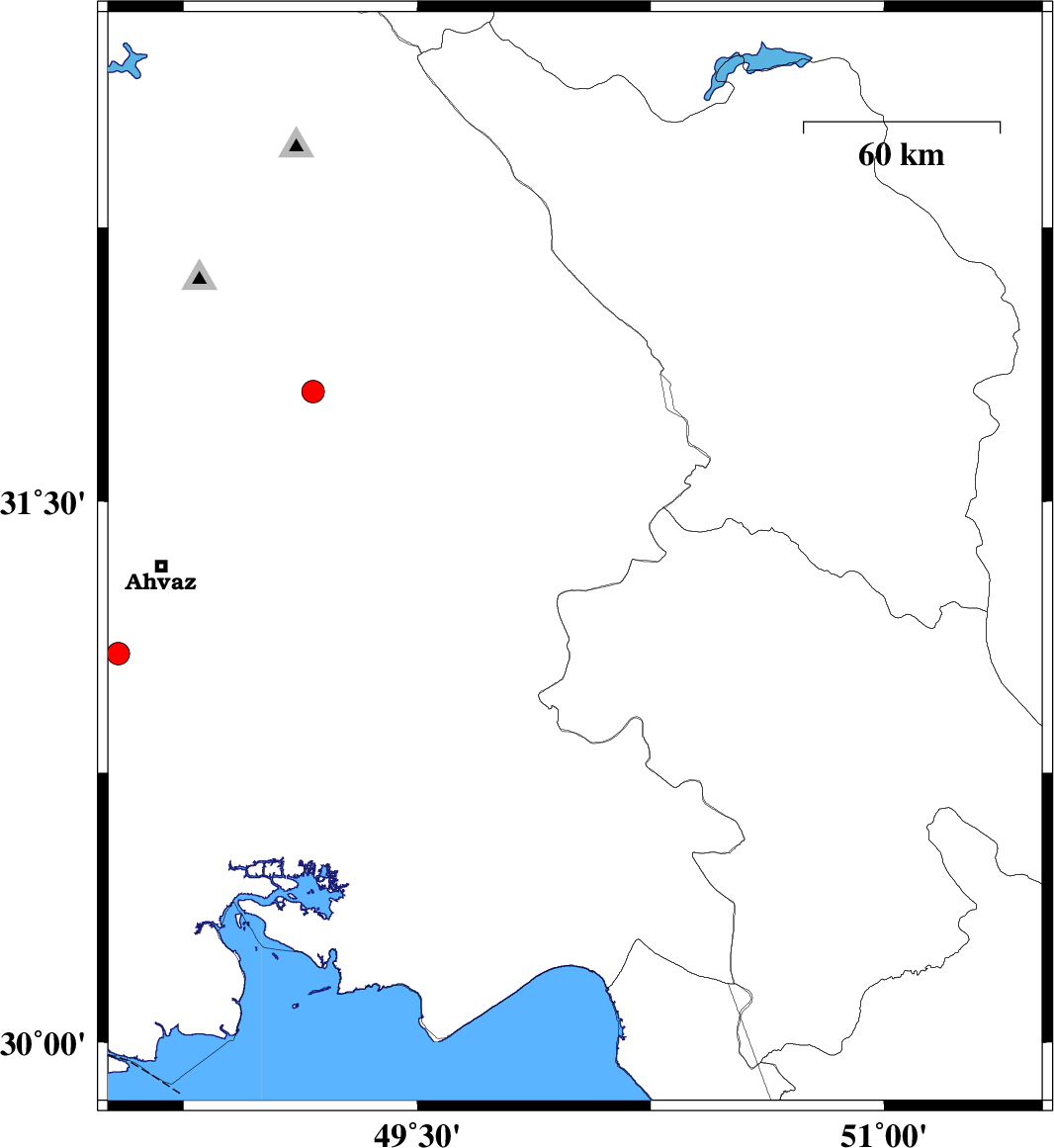| 2025/07/10 | 08:49:43.5 | 12:19:43.5 | 30.823 | 49.562 | 12 | ML:3.3 | Khoozestan Province, 15 km -West of Omidiyeh |
