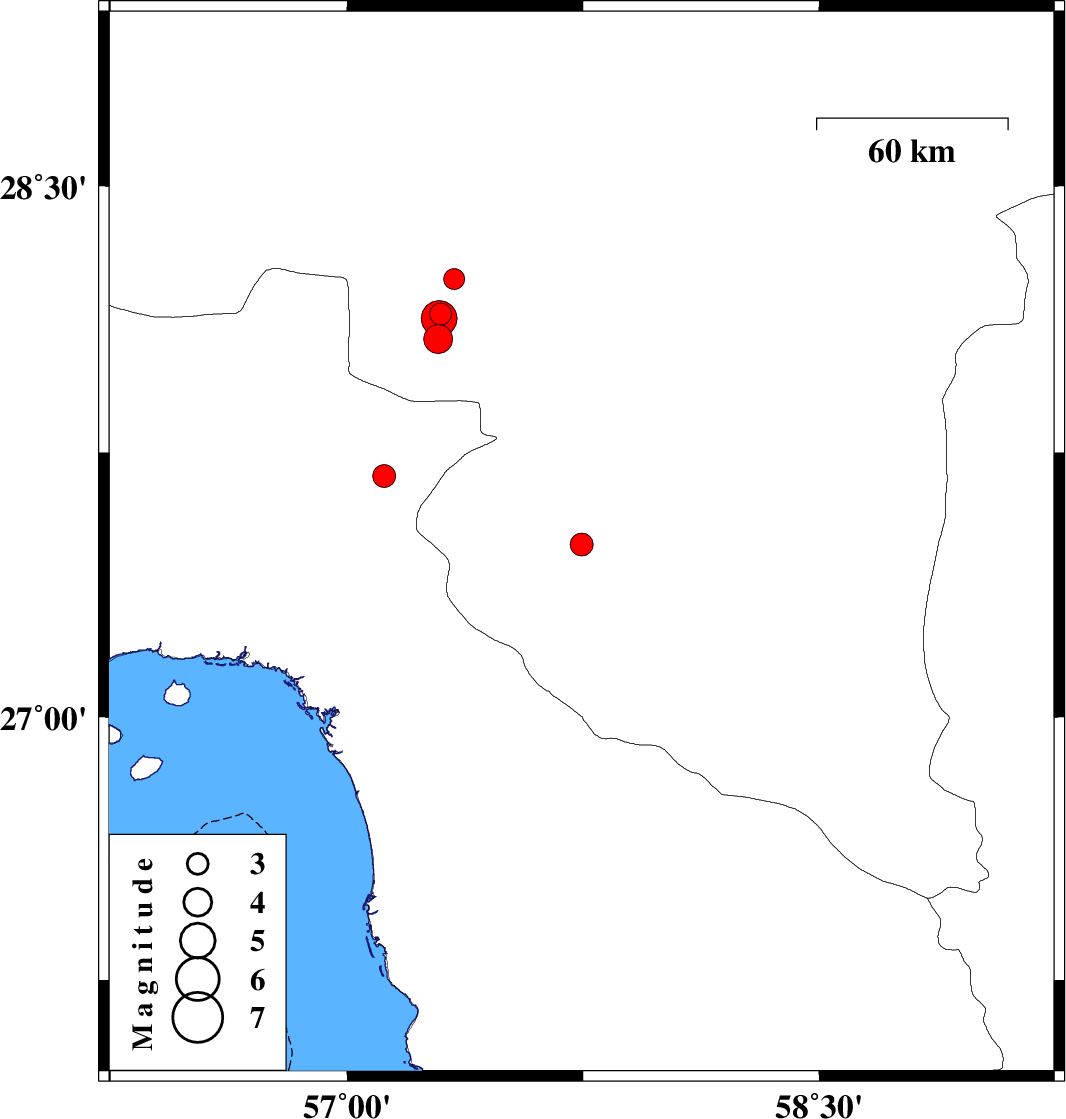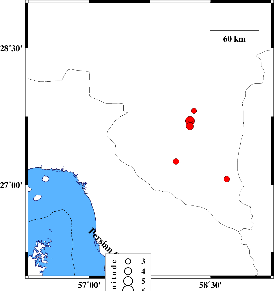 | 2025/05/26 | 15:02:41.1 | 18:32:41.1 | 28.238 | 57.34 | 10 | ML:3 | Kerman Province, 47 km North-West of Kahnuj |