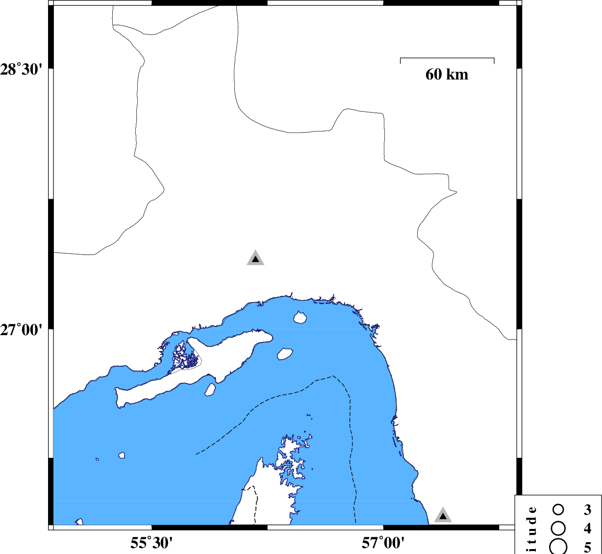 | 2025/07/06 | 02:28:47.4 | 05:58:47.4 | 26.978 | 54.982 | 12 | ML:3.6 | Hormozgan Province, 52 km North-East of Bandar-e lengeh | ||