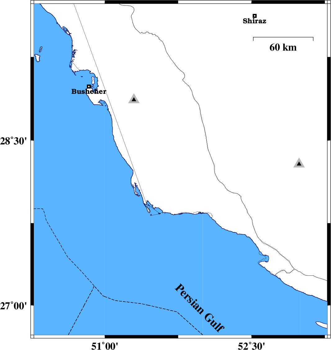 Bushehr Province, 53 km North-West of Bandar-e kangan | |