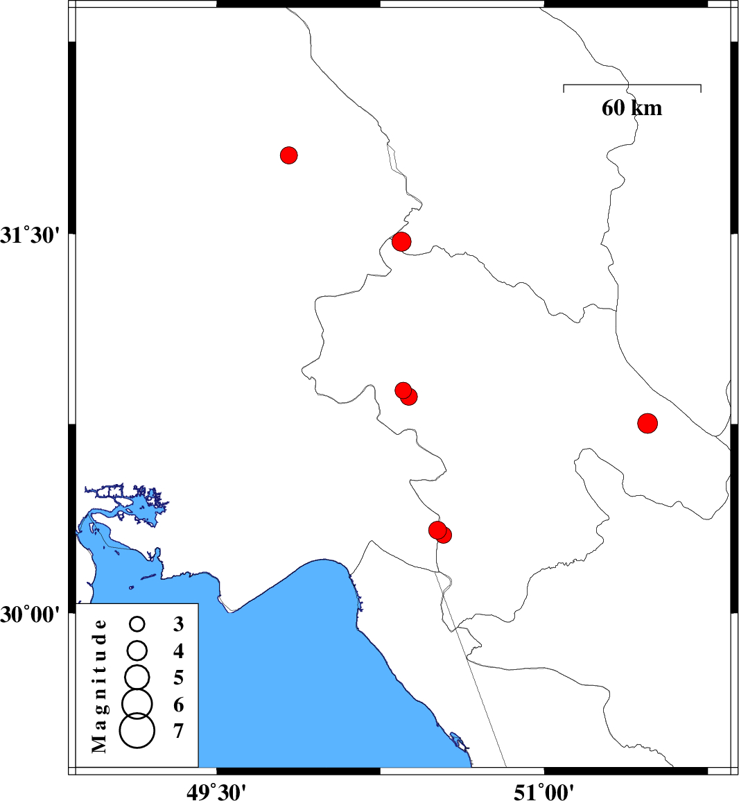 | 2025/08/02 | 16:16:43.4 | 19:46:43.4 | 30.883 | 50.354 | 12 | ML:3.4 | Kohkiluieh va boyerahmad Province, 23 km -West of Dehdasht | ||