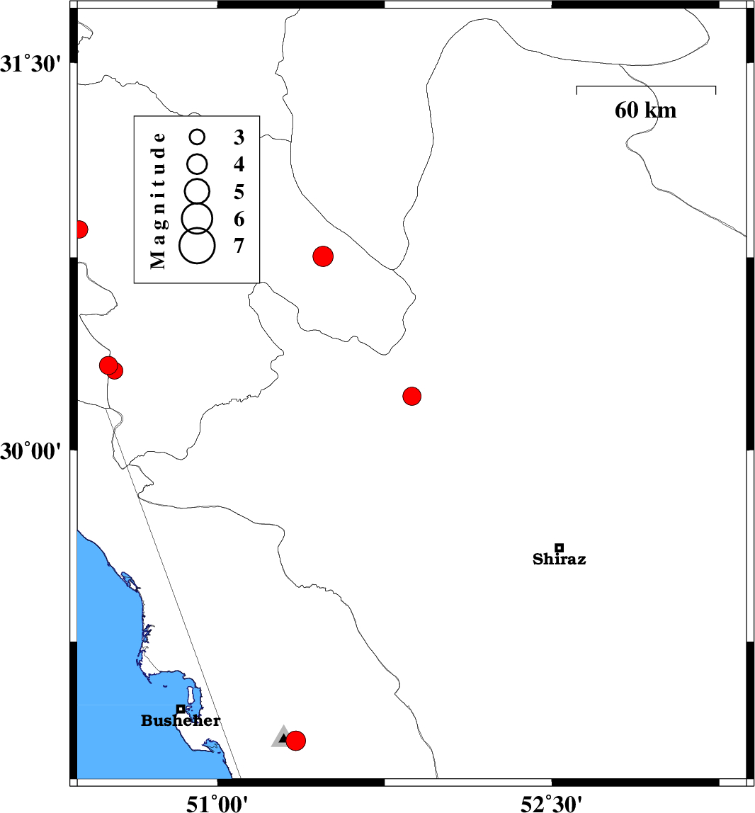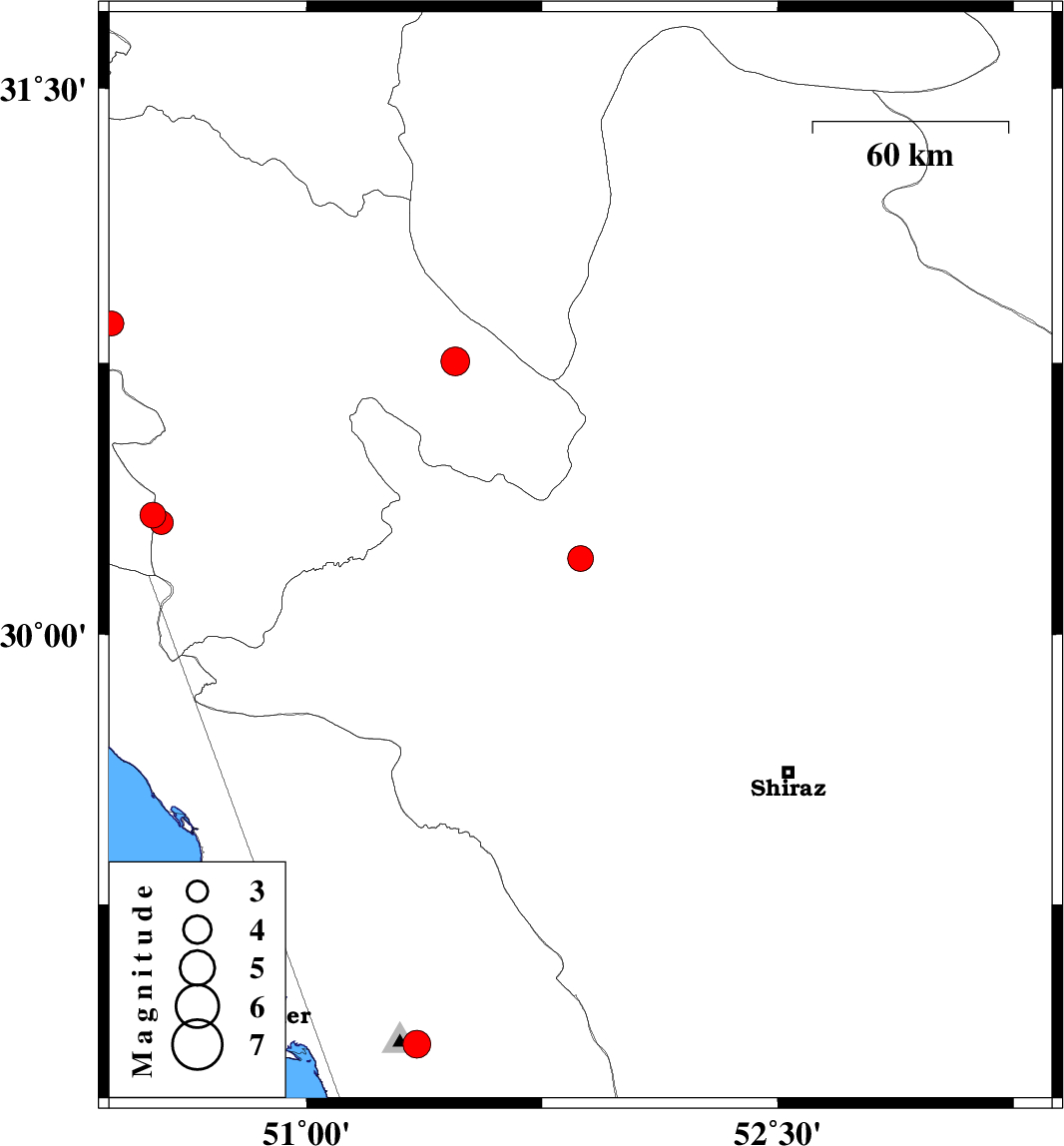 | 2025/07/10 | 03:24:11.1 | 06:54:11.1 | 28.859 | 51.352 | 27 | ML:4 | Bushehr Province, 9 km of Ahram |