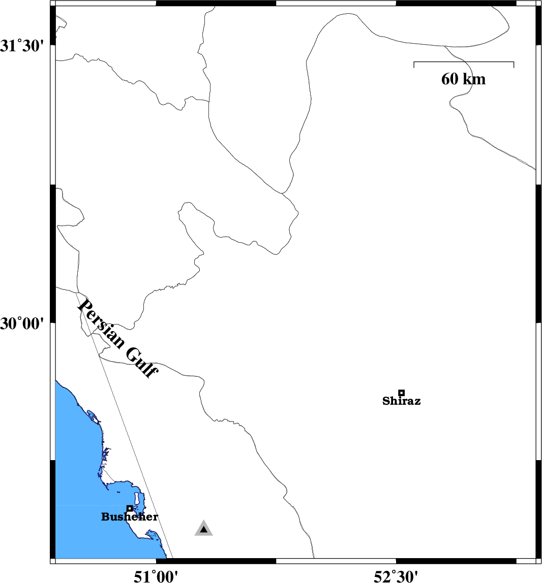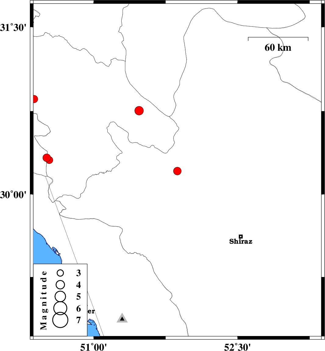 | 2025/08/02 | 02:34:09.7 | 06:04:09.7 | 30.21 | 51.872 | 12 | ML:3.7 | Fars Province, 12 km -West of Ardakan | ||