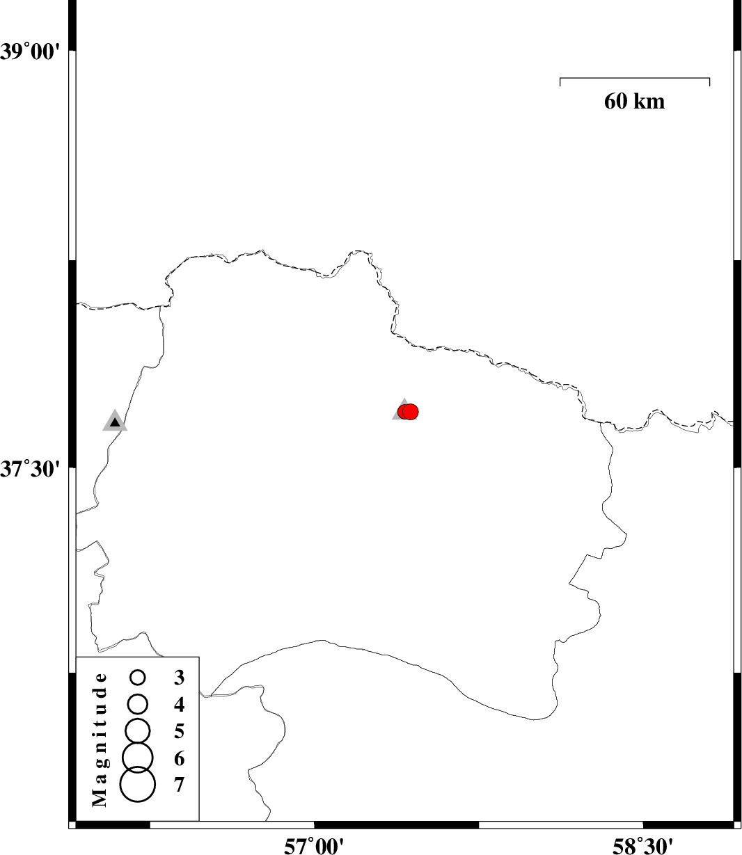| 2025/08/16 | 13:09:18.2 | 16:39:18.2 | 37.702 | 57.438 | 10 | ML:3.2 | Khorasan(north) Province, 27 km North-East of Bojnurd | ||