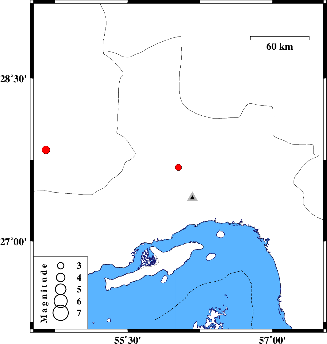 | 2025/08/17 | 10:46:30.9 | 14:16:30.9 | 27.842 | 54.654 | 12 | ML:3.7 | Fars Province, 36 km North-East of Lar |