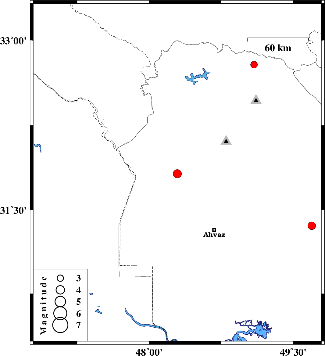 | 2025/08/20 | 23:03:43.6 | 02:33:43.6 | 31.821 | 48.293 | 12 | ML:4 | Khoozestan Province, 31 km North-East of Susangerd | ||