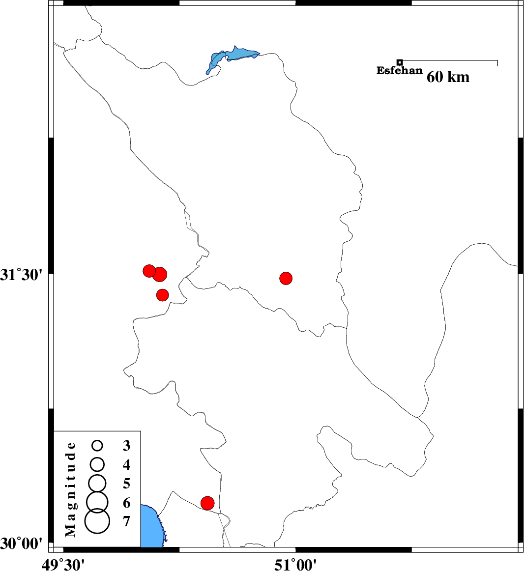 | 2025/08/30 | 12:07:06.0 | 15:37:06.0 | 31.474 | 50.937 | 12 | ML:3.7 | Chaharmahal Bakhtiari Province, 13 km -East of Lordegan | ||