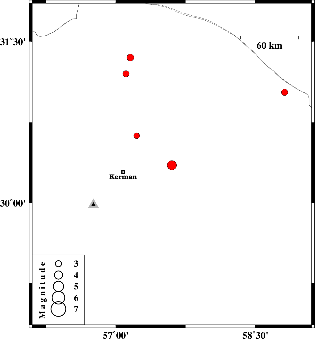 | 2025/08/31 | 22:04:45.3 | 01:34:45.3 | 30.626 | 57.225 | 12 | ML:2.8 | Kerman Province, 40 km North-East of Kerman | ||