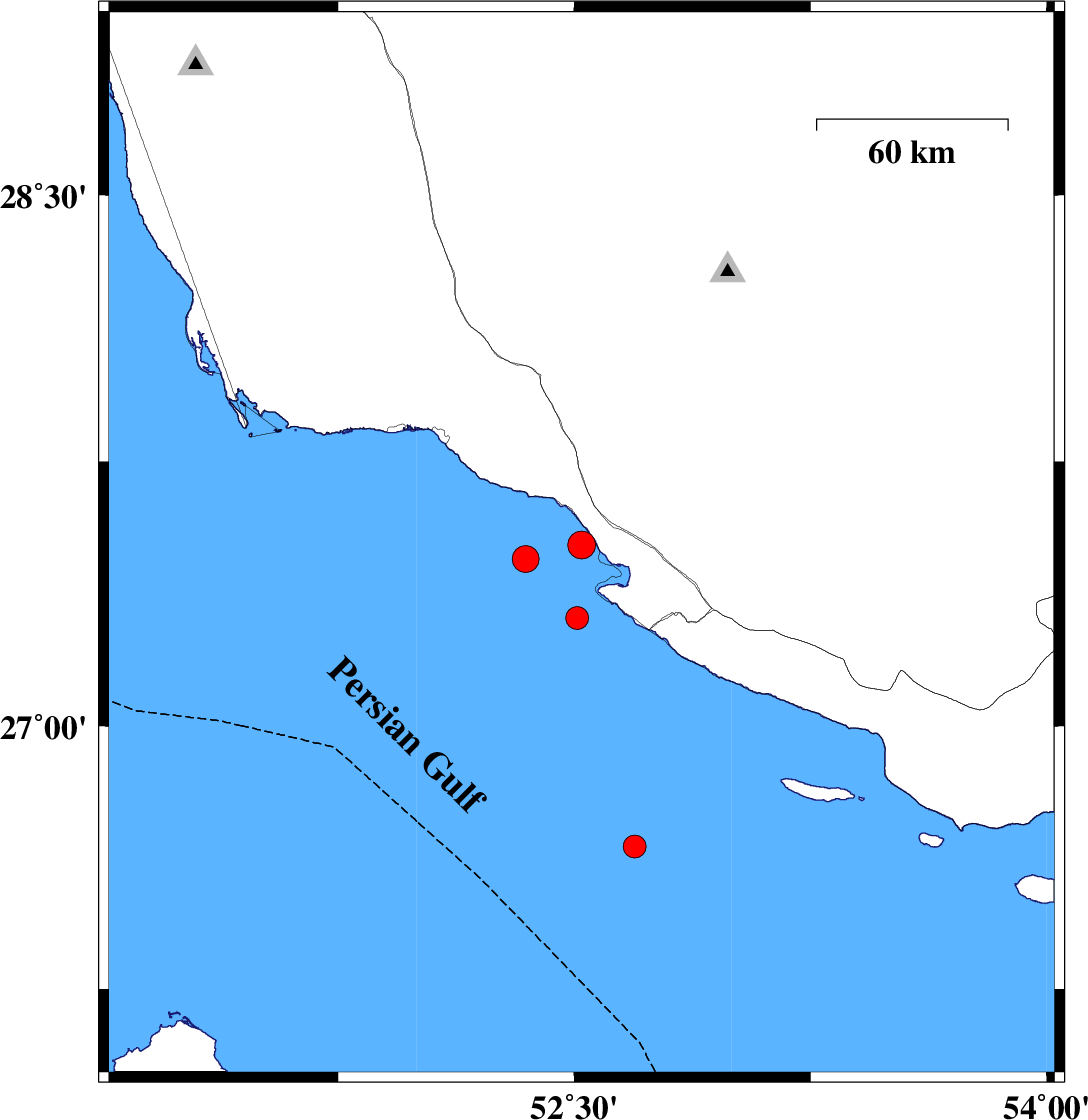 | 2025/08/29 | 13:11:51.5 | 16:41:51.5 | 27.474 | 52.346 | 12 | ML:3.8 | Persian Gulf, 40 km South of Jam |