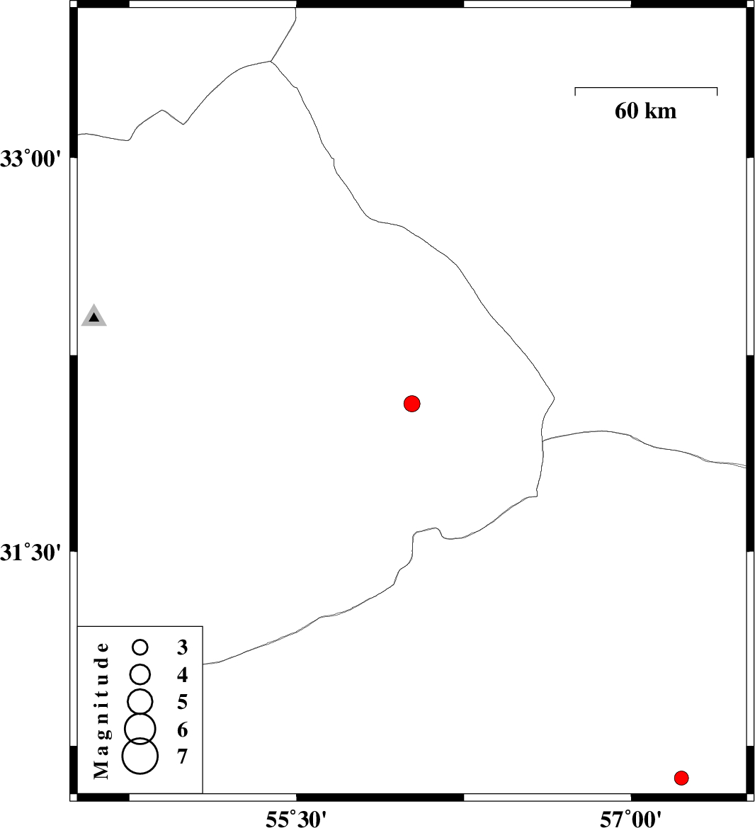 | 2025/08/31 | 22:04:45.3 | 01:34:45.3 | 30.626 | 57.225 | 12 | ML:2.8 | Kerman Province, 40 km North-East of Kerman |