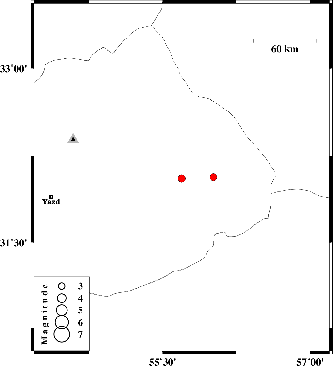 | 2025/09/05 | 13:35:40.4 | 17:05:40.4 | 32.053 | 55.694 | 12 | ML:3.4 | Yazd Province, 57 km North-East of Bafq | ||