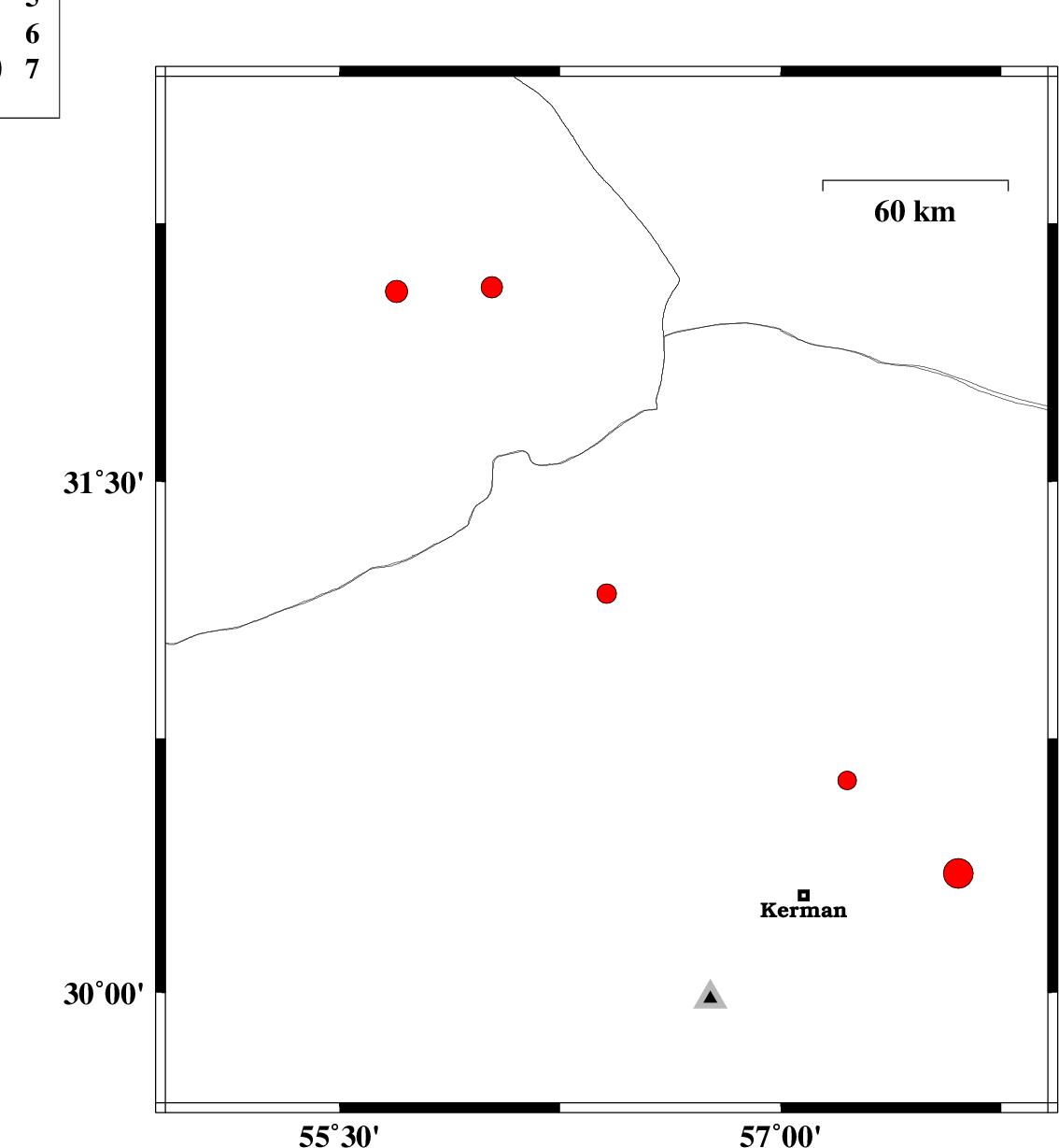 | 2025/08/31 | 22:04:45.3 | 01:34:45.3 | 30.626 | 57.225 | 12 | ML:2.8 | Kerman Province, 40 km North-East of Kerman | ||