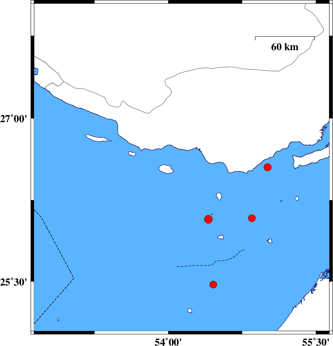 | 2025/09/03 | 08:45:33.3 | 12:15:33.3 | 27.252 | 52.643 | 12 | ML:3.6 | Persian Gulf, 41 km South-West of Mehr | ||