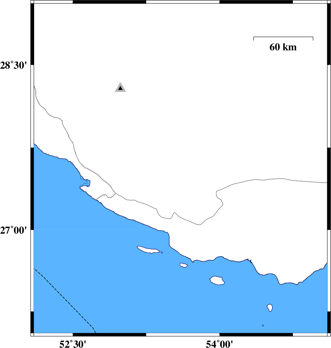 | 2025/09/10 | 22:28:31.7 | 01:58:31.7 | 27.368 | 52.544 | 12 | ML:3.3 | Persian Gulf, 39 km South-West of Mehr | ||