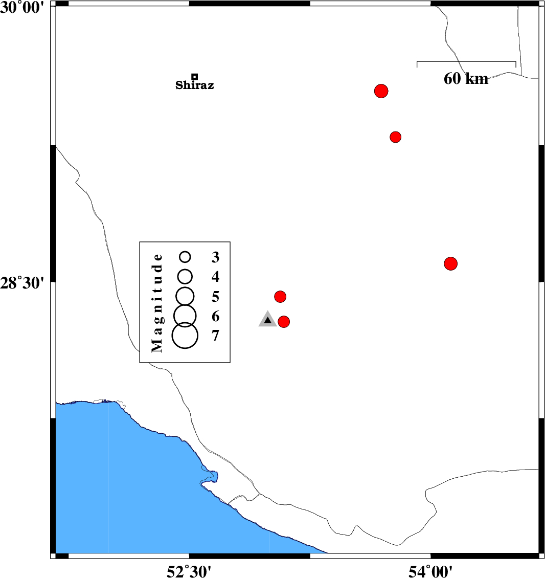 | 2025/09/10 | 22:28:31.7 | 01:58:31.7 | 27.368 | 52.544 | 12 | ML:3.3 | Persian Gulf, 39 km South-West of Mehr | ||