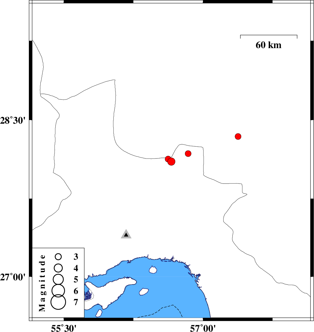 | 2025/07/28 | 10:20:55.8 | 13:50:55.8 | 28.179 | 56.84 | 12 | ML:3 | Hormozgan Province, 93 km South-East of Hajiabad | ||
