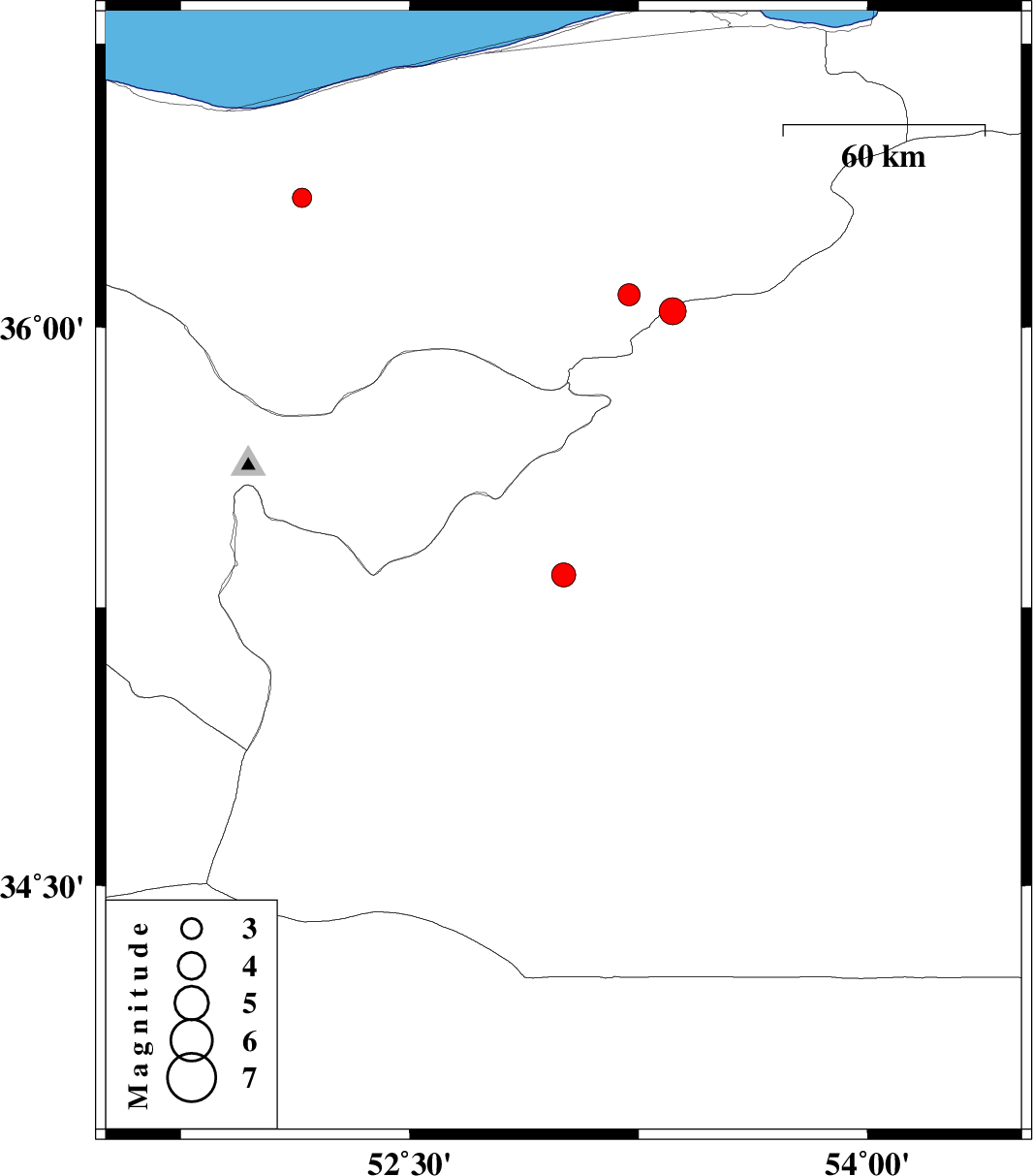 2025/09/20 | 19:43:39.2 | 23:13:39.2 | 36.343 | 52.147 | 7 | ML:2.8 | Mazandaran Province, 23 km South-West of Amol | ||