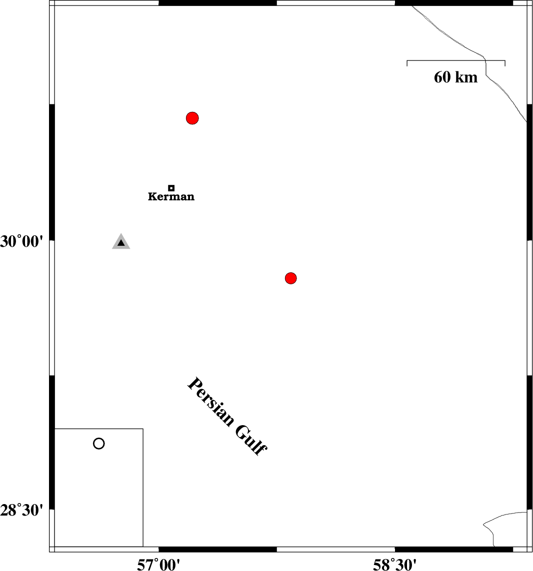 | 2025/09/22 | 07:56:58.3 | 11:26:58.3 | 29.79 | 57.838 | 12 | ML:3.3 | Kerman Province, 91 km North-West of Bam | ||