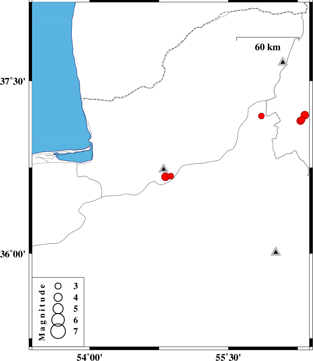 | 2025/09/14 | 13:48:20.8 | 17:18:20.8 | 36.67 | 54.82 | 12 | ML:4 | Golestan Province, 26 km South of Ali Abad | ||