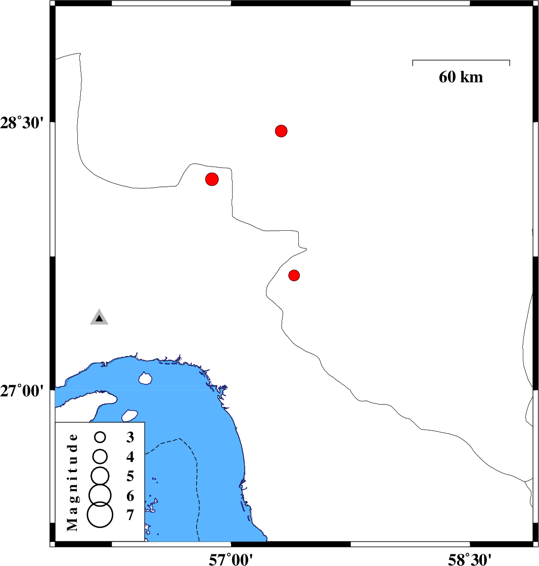 | 2025/09/28 | 16:11:50.9 | 19:41:50.9 | 27.644 | 57.395 | 12 | ML:3.1 | Kerman Province, 28 km North of Manujan | ||
