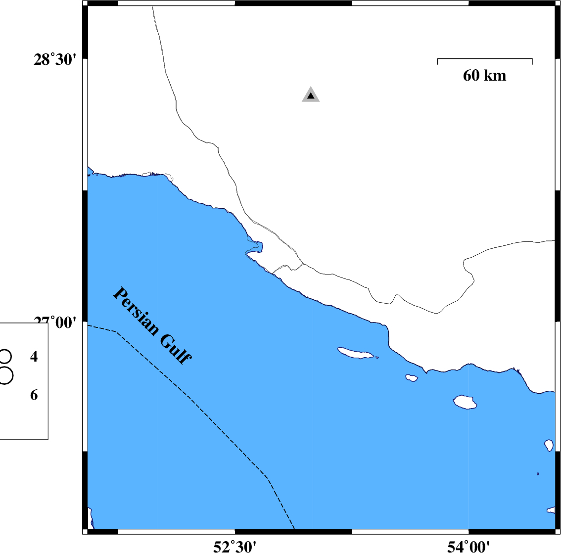 2025/07/27 | 08:30:26.5 | 12:00:26.5 | 27.325 | 52.573 | 12 | ML:4 | Persian Gulf, 40 km South-West of Mehr | ||