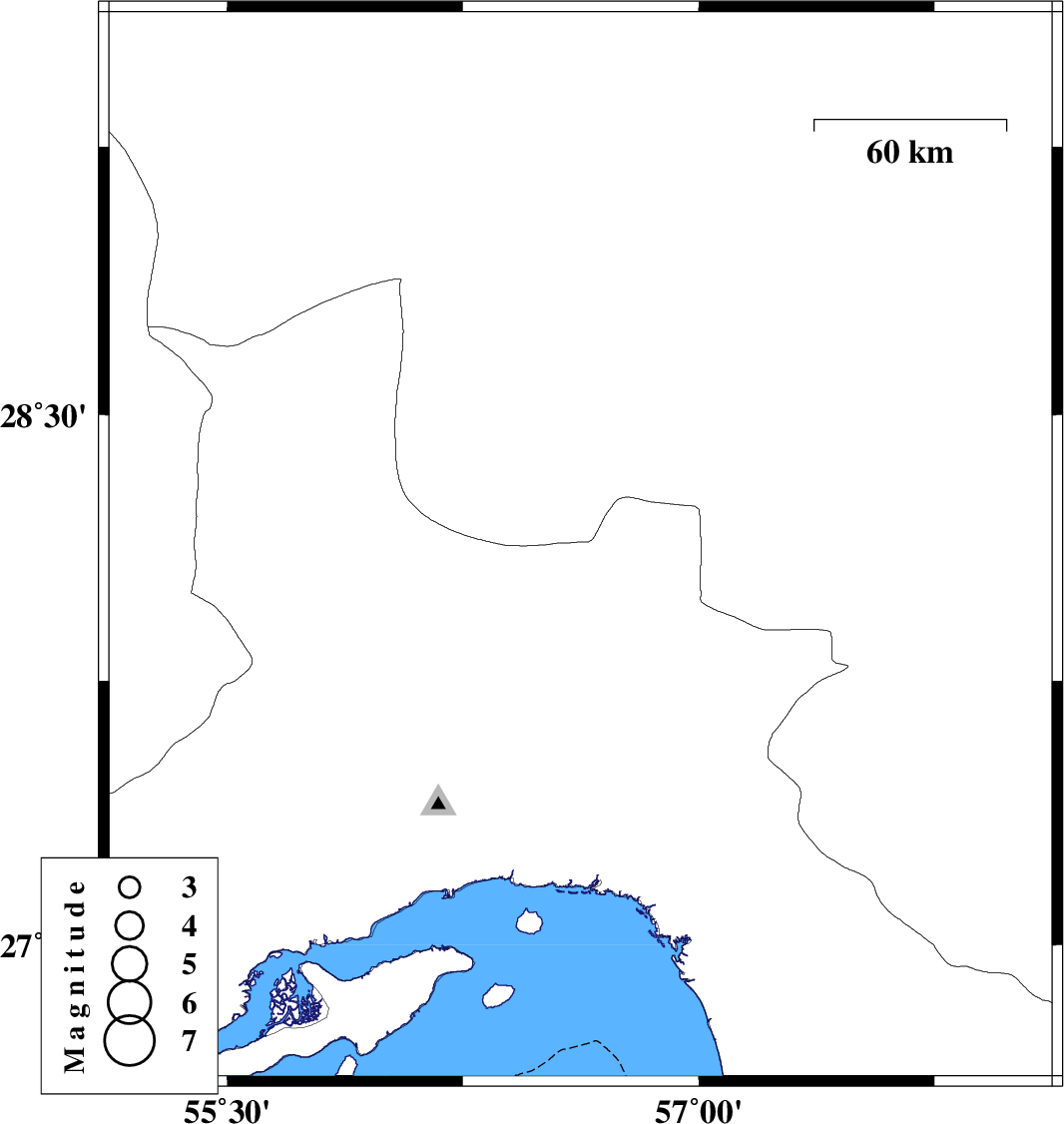 | 2025/07/27 | 22:22:29.3 | 01:52:29.3 | 28.127 | 56.624 | 12 | ML:3 | Hormozgan Province, 74 km South-East of Hajiabad |