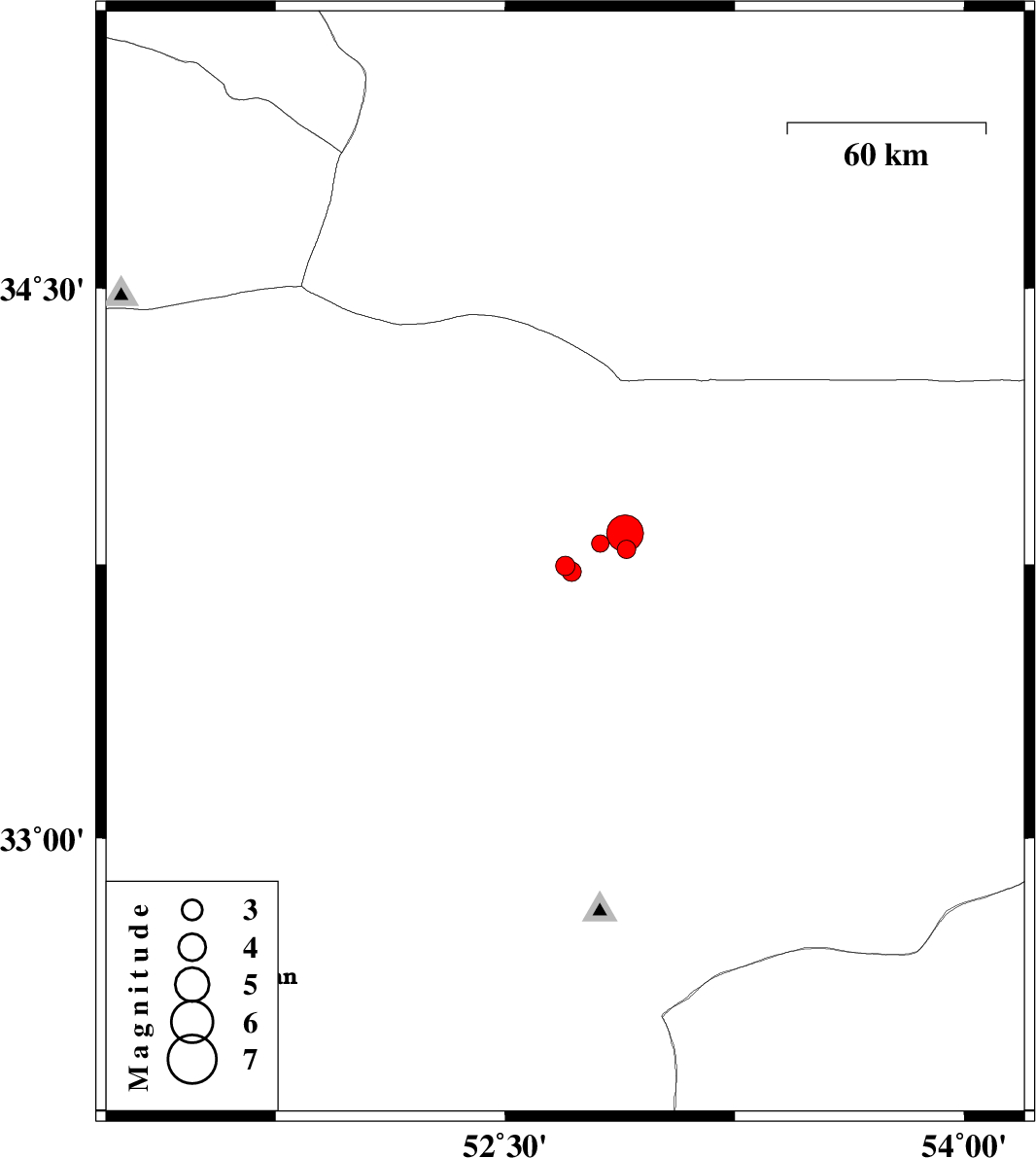 2025/10/02 | 23:03:16.3 | 02:33:16.3 | 33.79 | 52.897 | 12 | ML:2.7 | Esfahan Province, 67 km North-East of Ardestan | ||
