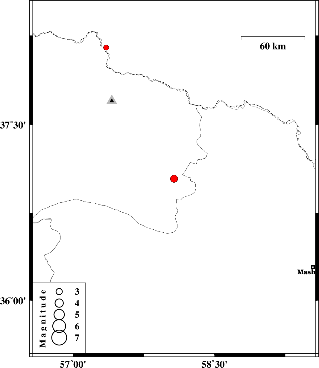 2025/10/10 | 18:14:46.9 | 21:44:46.9 | 37.042 | 58.071 | 12 | ML:3.5 | Khorasan(center) Province, 40 km South-East of Shirvan | ||