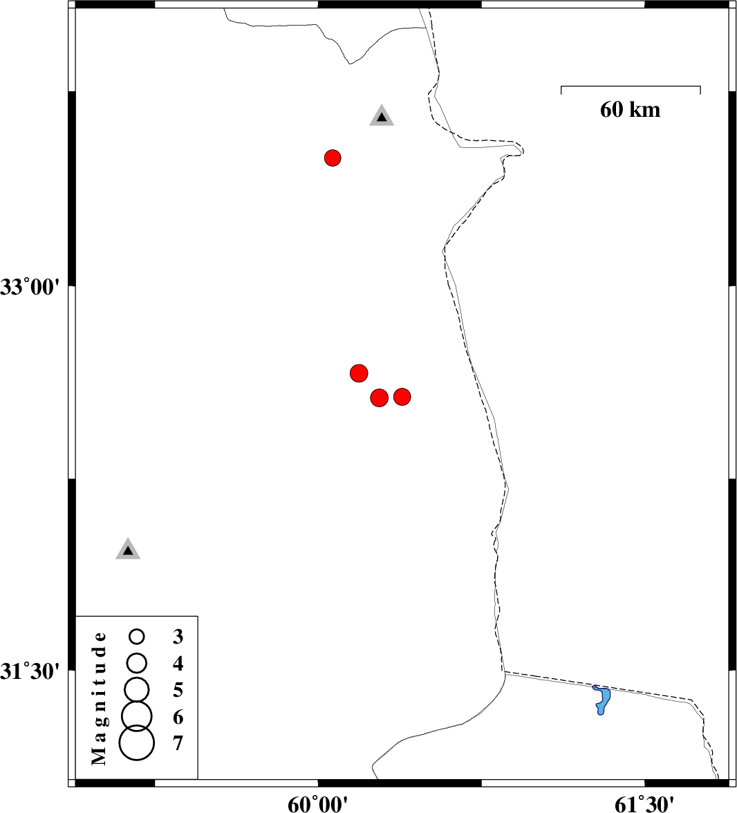 2025/10/10 | 07:07:43.7 | 10:37:43.7 | 32.565 | 60.281 | 16 | ML:3.7 | Khorasan(south) Province, 46 km -East of Sarbisheh | ||