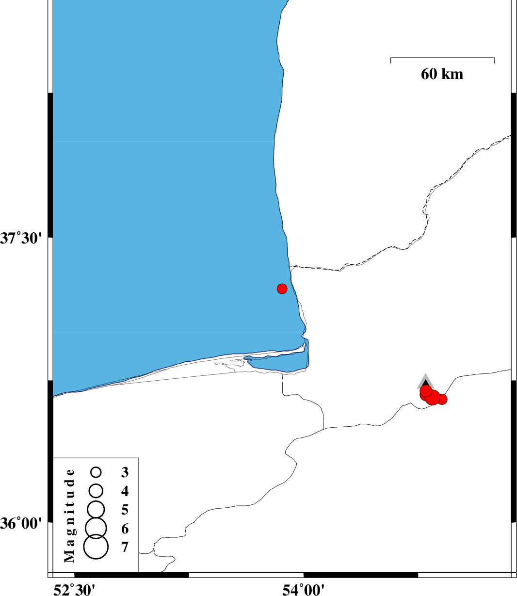 2025/10/20 12:00:20.3 15:30:20.3 36.69654.8019 ML:3.5 Golestan Province, 24 km South of Ali Abad