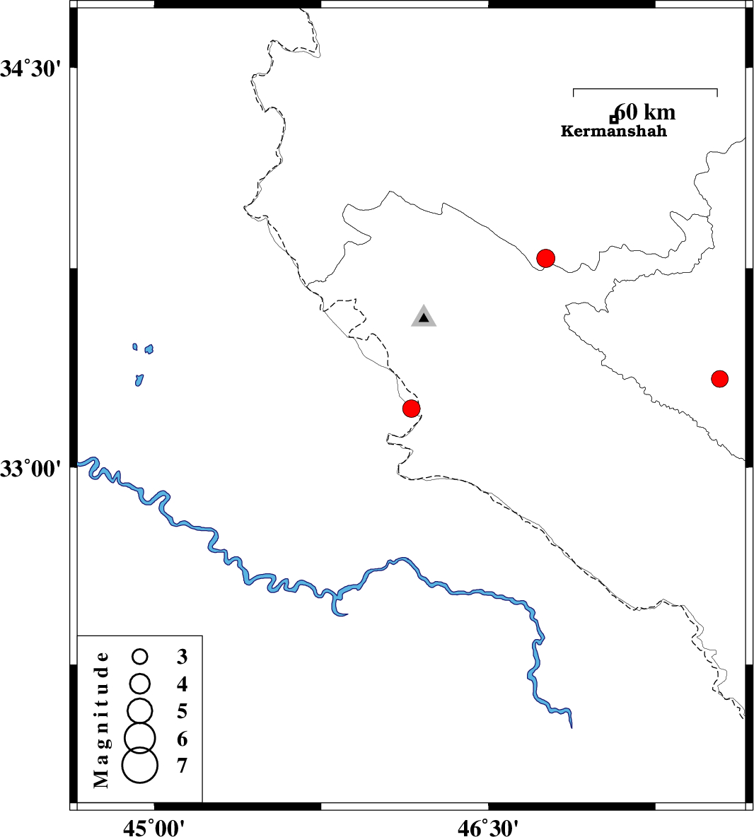 | 2025/10/20 | 06:15:14.1 | 09:45:14.1 | 33.334 | 47.539 | 12 | ML:3.4 | Lorestan Province, 23 km South of Kuhdasht | ||