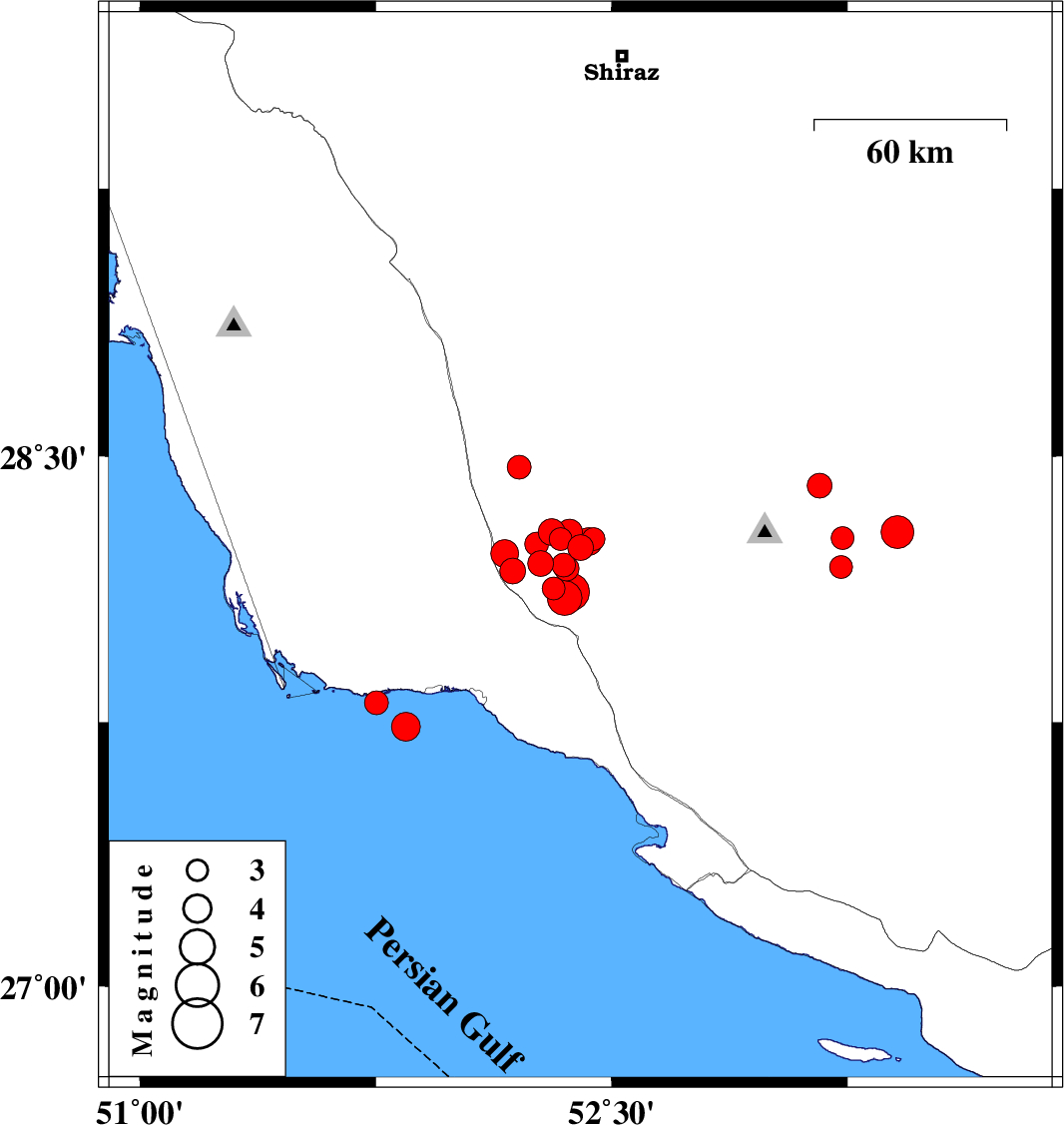 2025/01/07 13:08:29.8 16:38:29.8 28.17852.18512 ML:3.6 Fars Province, 41 km North-East of Bandar-e kangan