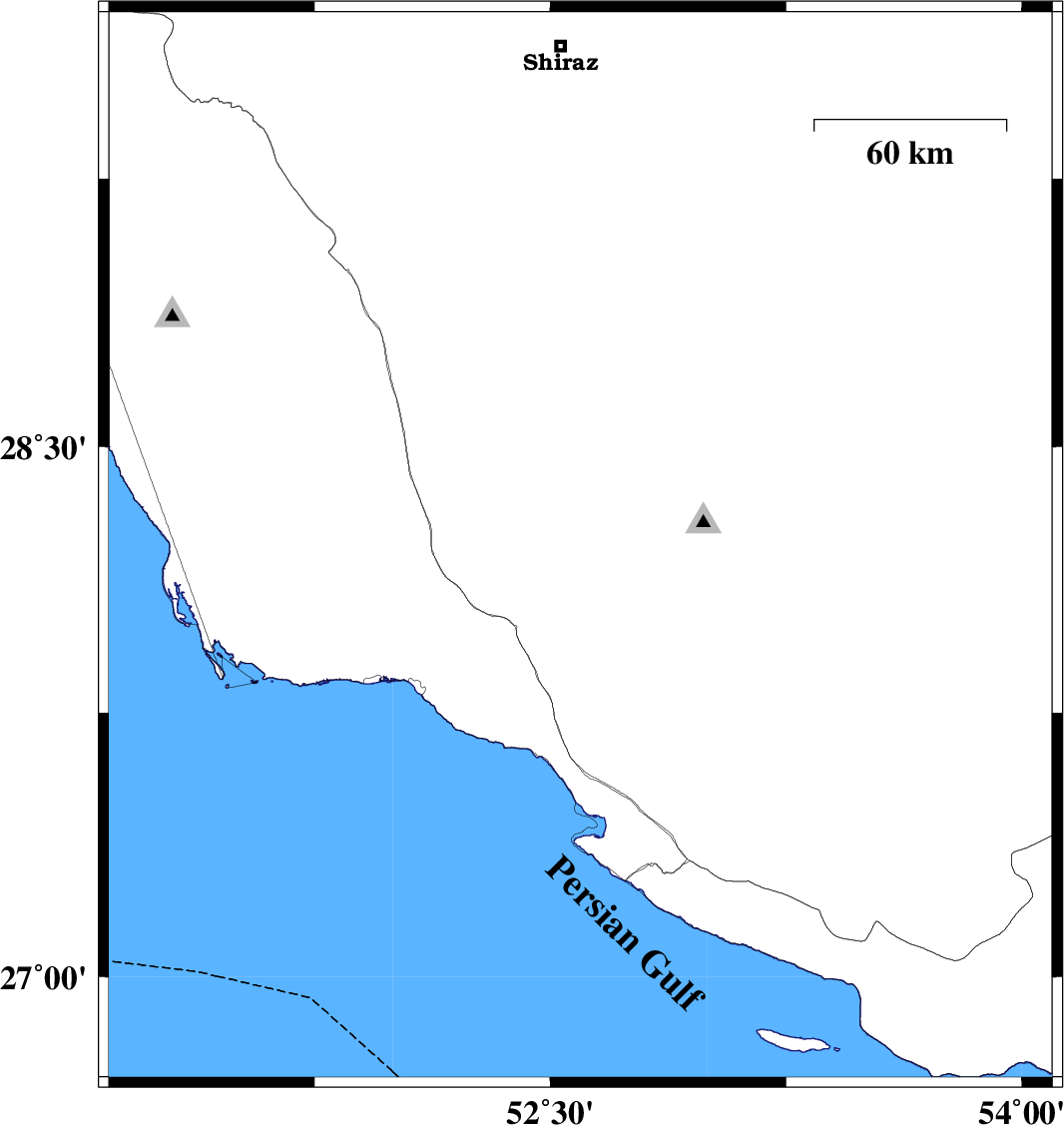 | 2025/10/30 | 00:10:47.7 | 03:40:47.7 | 26.977 | 53.008 | 12 | ML:3.5 | Persian Gulf, 43 km South-West of Lamerd | ||