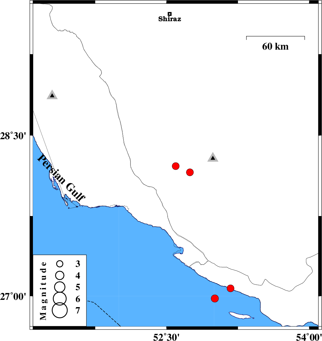| 2025/10/30 | 00:10:47.7 | 03:40:47.7 | 26.977 | 53.008 | 12 | ML:3.5 | Persian Gulf, 43 km South-West of Lamerd | ||