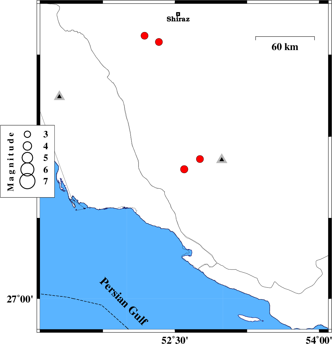 | 2025/10/30 | 15:30:37.5 | 19:00:37.5 | 28.215 | 52.596 | 17 | ML:3.4 | Fars Province, 68 km South of Firuz Abad | ||