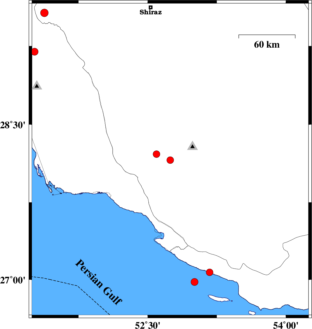 | 2025/10/07 | 07:53:09.4 | 11:23:09.4 | 29.566 | 51.38 | 17 | ML:3.8 | Fars Province, 27 km -West of Kazerun |